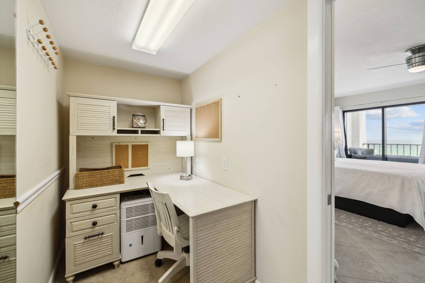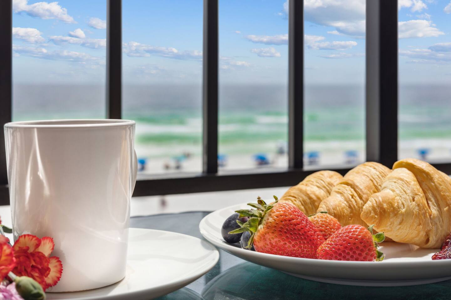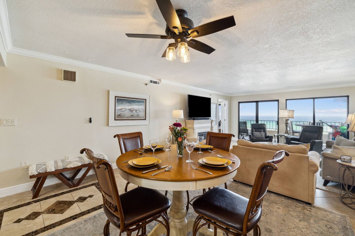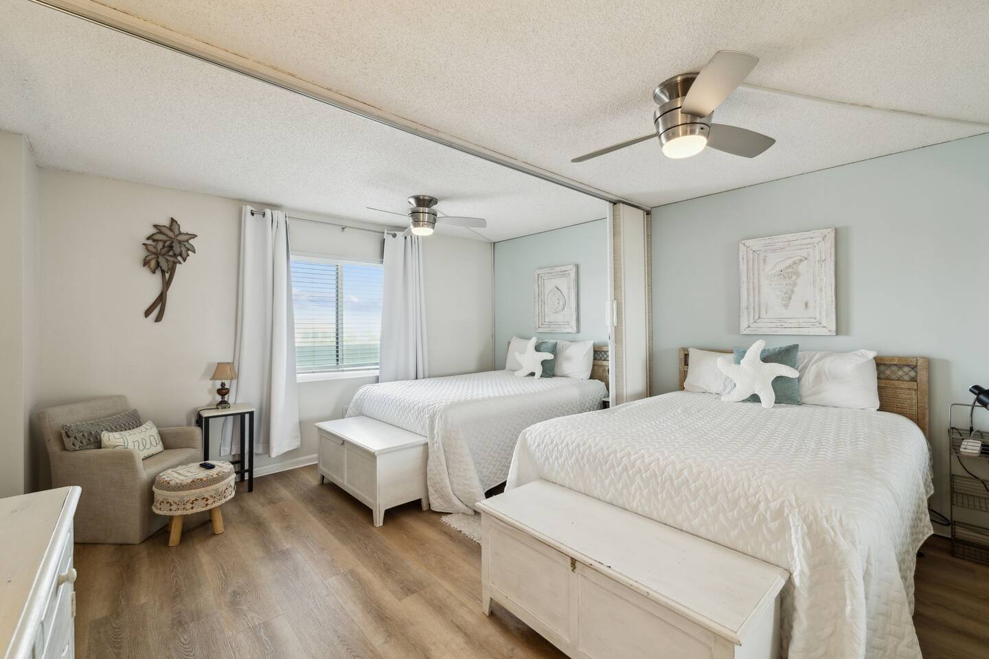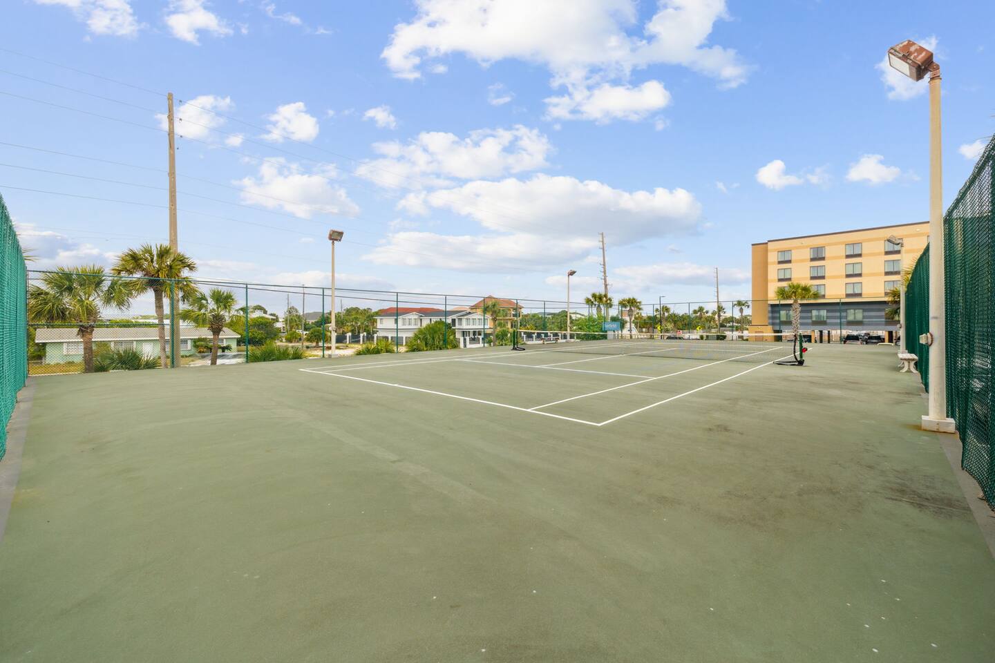 It doesn't get better than this. Enter your private beach oasis with elegant touches throughout. The moment you open your door, you know why you booked with us, you're ready to enjoy a fabulous vacation. Tastefully decorated, a modern beach theme, high-end appliances and furniture, all with the comforts of home, but so much better! Why cram into a hotel room when you can have a spacious, 2-bedroom condo overlooking the emerald green waters of the Gulf of Mexico? Free beach service included on this uncrowded beach! Welcome to your spacious condo with remarkably elegant renovations. Our Surf Dweller location offers you the most ample space in the area with 1453 sq ft! Our 4th floor beach condo is just what you need for a respite from the hustle and bustle of life. Kitchen: The spacious kitchen and dining areas are designed to flow directly into the living area and create an open space not seen in many condos, with amazing Gulf front views. The kitchen has high end cabinetry with soft-close doors/drawers, granite countertops and beautiful stainless steel appliances. A large granite kitchen island gives you plenty of room to entertain and perfect for those family gatherings. Start your morning off right with a single cup, or full pot, of java from the coffee bar and enjoy the beautiful morning view off your lanai. End the day by choosing your favorite bottle of wine from the wine cooler, relaxing as the cool breeze off the ocean helps you reflect on the fabulous day you just experienced with your friends or loved ones. Love to cook? Entertain with a gourmet meal on the 6-burner stove top, visiting with your family around the generous granite island. The kitchen is fully equipped with high quality pots & pans, toaster, Keurig coffee maker, bakeware, glasses, coffee cups, utensils, serving platters and bowls, children's dishes, and many more items, so prep time will be a breeze. Prefer not to cook? You have so many restaurants to choose from, you may have a hard time narrowing it down! Living Space: Enjoy incredible views while lounging in the comfortable electric reclining couch and chairs. Or catch up on your favorite how that you've had to put off watching while running the rat race in that other place you sometimes call home. You can enjoy DirectTV on your 65" screen TV or connect to your subscriptions and try out a new movie with your friends and loved ones. Or enjoy a board game, read a book, or play a card game, all available in your unit. Master Bedroom: French doors separate the primary suite from the living area. Your sleep will be the best you've had in a long time on your comfortable king bed using nature's noise machine with the ocean waves lulling you to sleep. The high-end wardrobe features a lockable drawer and plenty of space for all your belongings. In the spacious walk-in closet we have all the extras you might need like a pack - n - play, high chair, and linens, to name a few. Guest Bedroom: The guest bedroom has a retractable room divider with two separate entrances, a remote control light, fan, and a queen bed on each side, for optimal sleeping arrangements. Don't live out of your suitcase! Store them in the extra large closet available and truly make this your home while you are here. Office: Just off the master bedroom is your office space. None of us really want to work but reality is, we sometimes need to squeeze in a little bit so we can go have fun! So, if working on the lanai overlooking the ocean waves is too distracting, enjoy a little peace and quiet and get things done efficiently in your own office. Our wifi is great for working! With over 50 Mbps download speeds and upload speeds, you won't be waiting for the dreaded spinning wheel from slow internet connections, which means more time for fun! Laundry: Don't over pack because you have a full-size washer and dryer in your unit. Just be sure to leave all the sand on the beach, before washing to keep it functioning well. Bathrooms: After a hard day of playing, enjoy a nice hot shower, with great water pressure, in your newly updated bathrooms. Or, after you've given the kids a bath and gotten them to sleep, soak away your worries and aches in a warm bubble bath. Get outdoors: Your private outdoor space boasts a 30 foot private balcony architecturally designed to make for the best of Gulf front living!! With several different seating options, you can enjoy this space from the minute you wake up until you rest your sleepy head. Or venture off your balcony to the seasonally heated pool that has a 3' shallow end increasing to 8' at the deepest. Too much for the little ones? Don't worry, right next to the "big kids" pool is a fenced kiddy pool area so you can relax while they frolic in a space made just for them and you don't have to chase them the entire time. Tennis or pickleball anyone? Enjoy a little friendly competition in a game of either on the court here at Surf Dweller. It's beach time! That is one of the biggest reasons you are here, right? Just a few steps from your condo, are the beautiful shores of the Gulf of Mexico with emerald green waters and almost powdered sugar sand, a private beach area for Surf Dweller guests. Relax and soak in the sun or play hard until you fall asleep. But don't forget your sunscreen! And don't worry, you don't have waste precious car space, we provide all the supplies for outdoor fun including beach toys & towels, beach chairs, and more! Getting there: We have 3 airports nearby so take your pick. VPS is only about 20-25min away. It is so easy to get to your 4th floor unit, NO steps required! Your free parking spot on the property isn't far from the entrance where carts are available to throw all your belongings onto, then grab the elevator and head up, with the unit being only the 3rd unit from the elevator, you'll be entering paradise before you know it! What to bring: Tired of seeing the words "we provide a starter supply...."? We are too, so we provide much more. We provid
