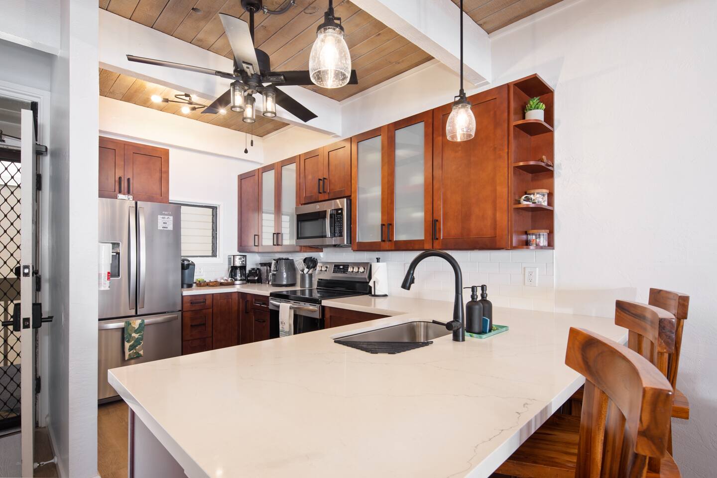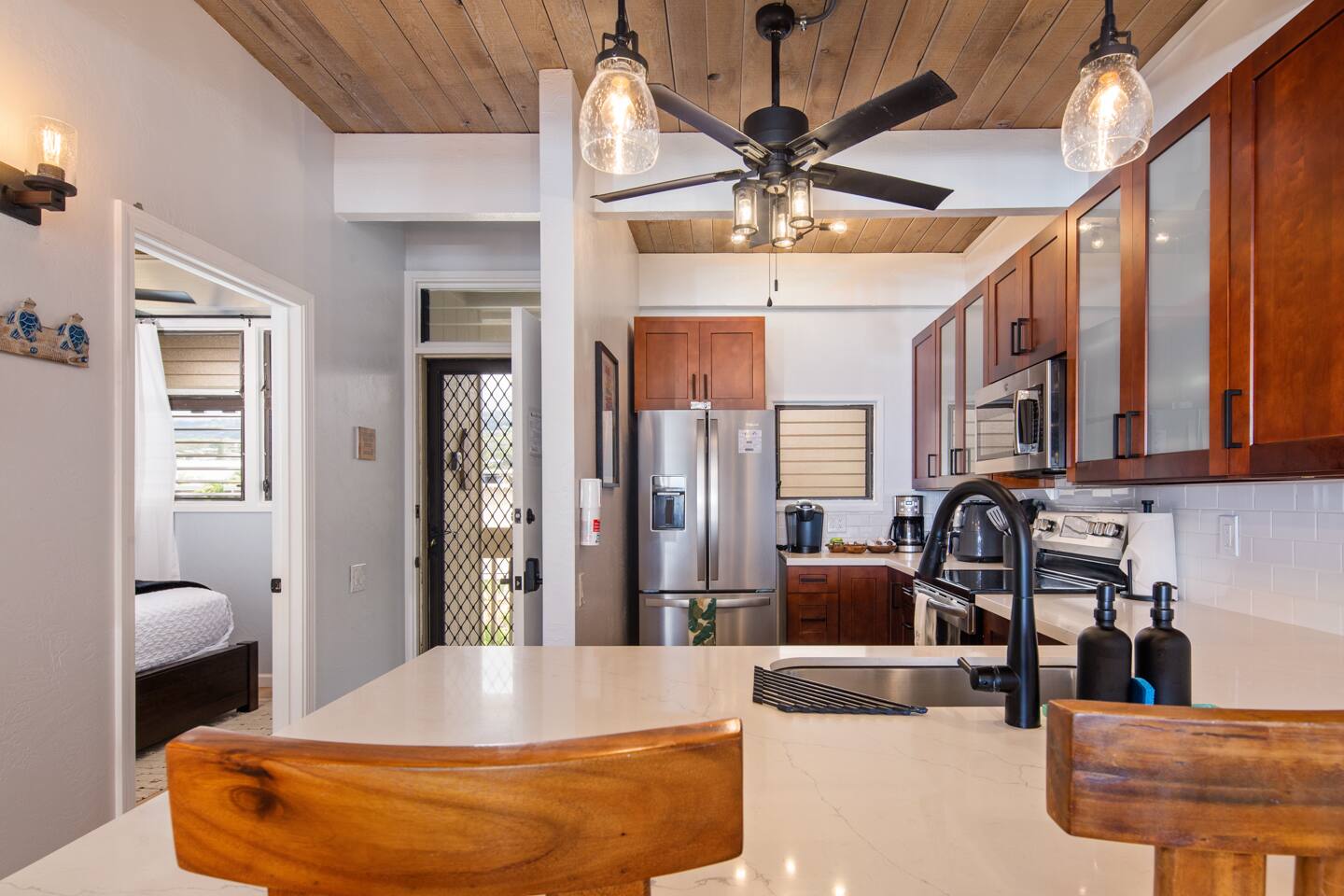 We have Da Poke Shack, the island's most popular Poke and Hawaiian Plate restaurant right here in our building! Rated #1 of 145 restaurants in Kailua-Kona, they have Poke, Shrimp, Lau Lau, Kalua Pork, and even vegetarian and gluten free options. Eat there or take your plate back to your private lanai and enjoy watching whales breach (Nov-May), the famous Banyans Surf Spot, or spinner dolphins! Even though we try to provide lots of amenities like snorkel equipment and various spices, we do not guarantee the availability. We do not sanitize items between guests, so please take that into consideration. CAUTION: The ocean can be full of beautiful but dangerous marine life. We highly suggest that you do a lot of research and be very honest about your skill level with swimming/snorkeling/boogie boarding etc. Please wear water shoes into the water at our condo and try to not step on the coral. Some things to watch for include sea urchins, sharp coral/lava and more, There are lots of more sandy beaches in the area and really easy to find by searching online where you will find locations, details, & pictures. We don't do mid-stay cleaning normally but if that is something you are interested in, please reach out and we will discuss if that is something we are able to provide for you. On occasion, pest control will need to treat the unit to prevent pests from hanging out with us. If they request access, please allow them in. They use a safe non-toxic formula and the whole process is over in less than 5 minutes so it is not necessary to leave the unit while they are there. Check-in/Check-out Times: My cleaning and maintenance team have a very limited window in which to accomplish their work of making the unit ready for you and future guests. So that they can do their best possible work and ensure a clean and comfortable stay for you, early check-ins and late check-outs are not available.